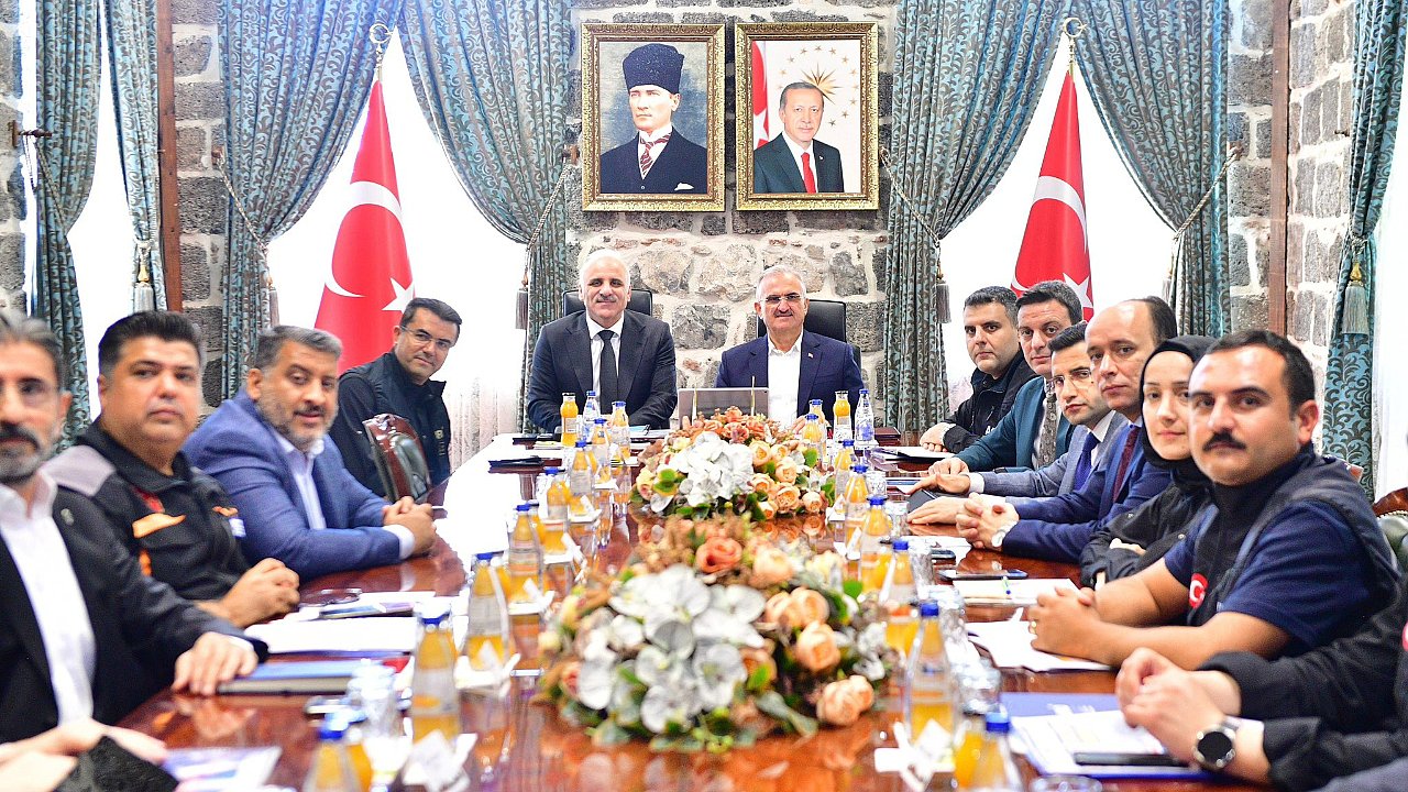 Diyarbakır Valiliği'nde gerçekleştirilen Oğlaklı Afet Konutları koordinasyon toplantısında, İçişleri Bakan Yardımcısı Münir Karaloğlu, Diyarbakır Valisi Murat Zorluoğlu, AFAD Başkanı Okay Memiş ve diğer yetkililer, afet sonrası yapılacak çalışmaları ve konutların durumunu değerlendirdi.