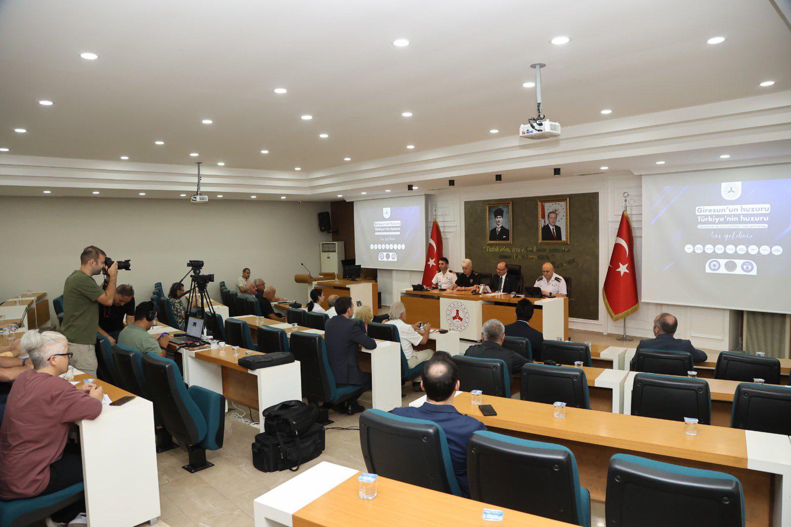 Giresun Valisi Mehmet Fatih Serdengeçti, Giresun'da düzenlenen güvenlik Bilgilendirme Toplantısı'nda basın mensuplarıyla bir araya geldi. Toplantıda, ilde meydana gelen olaylar ve güvenliği sağlamak amacıyla yürütülen hizmetler hakkında detaylı bilgiler verildi.