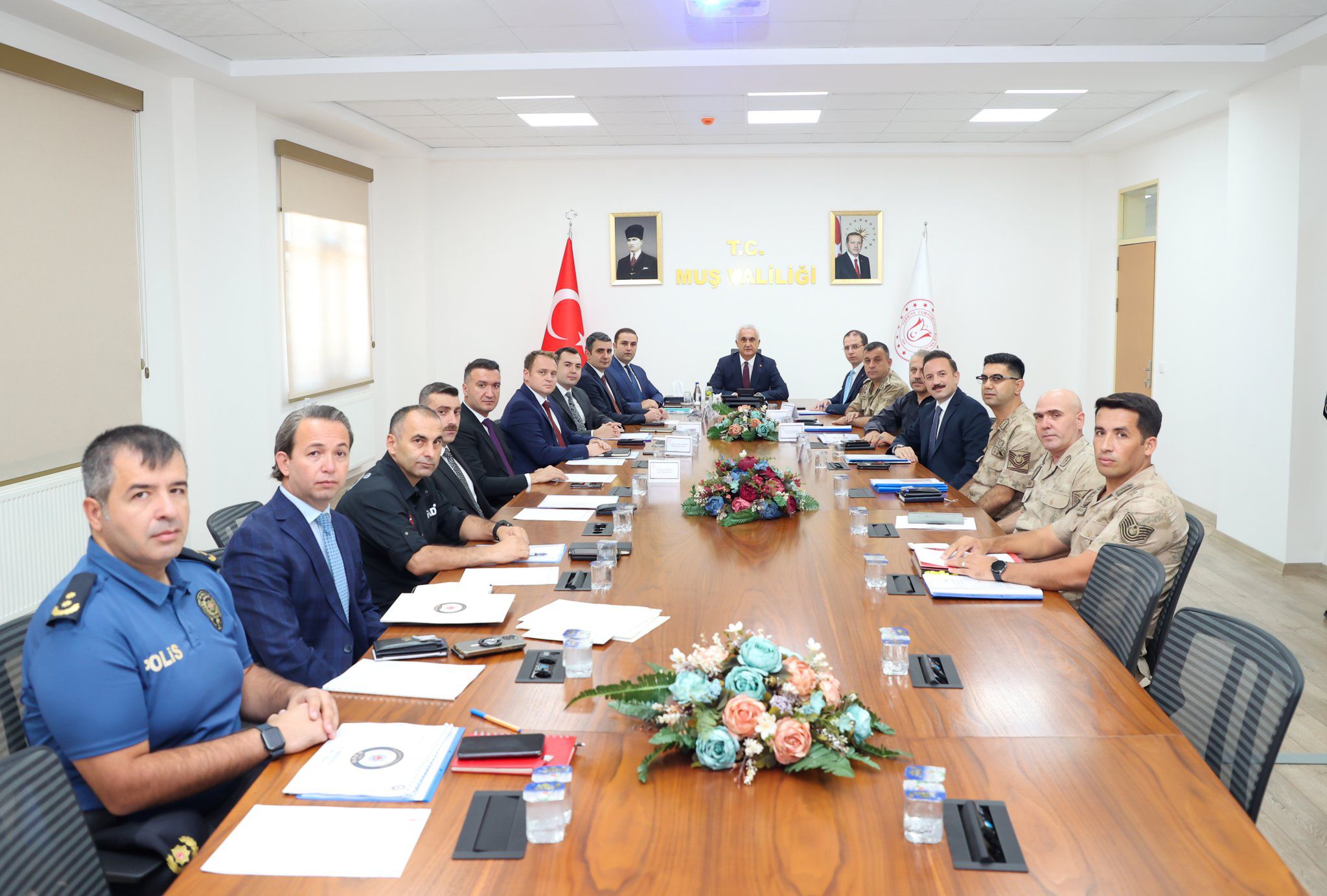 Muş Valiliği’nde Vali Avni Çakır başkanlığında gerçekleştirilen "Genel Güvenlik ve Asayiş Toplantısı"nda, ilin genel asayiş durumu ele alındı. Toplantının ana gündem maddesi, 26 Ağustos’ta Cumhurbaşkanı Recep Tayyip Erdoğan’ın katılımıyla düzenlenecek olan 953. Yıl Anadolu’nun Fethi Malazgirt 1071 Anma Etkinlikleri için alınan güvenlik tedbirleriydi.