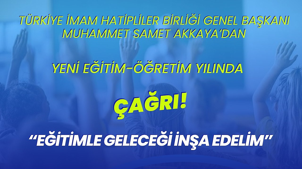 Türkiye İmam Hatipliler Birliği Genel Başkanı Muhammet Samet Akkaya, yeni eğitim-öğretim yılı dolayısıyla öğrencilere, öğretmenlere ve ailelere yönelik bir mesaj yayınladı. Akkaya, eğitim sürecinin sadece akademik başarı değil, toplumsal gelişim için de önemli olduğunu vurguladı.